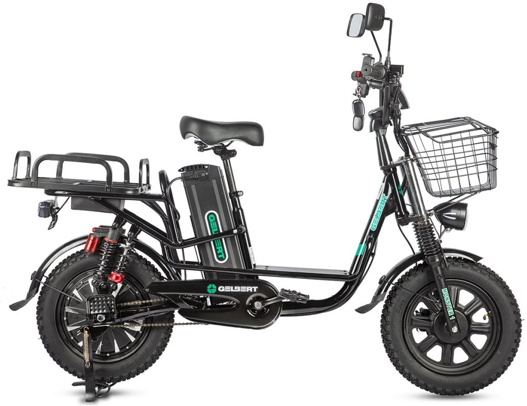 Основой модели служит прочная стальная рама и надёжный задний привод. Колёса 16" x 3.0" с толстой резиной отлично держат сцепление даже на рыхлой поверхности. Электродвигатель 350 Вт (номинальная мощность 240 Вт, с маркировкой на моторе) питается от аккумулятора 21 Ач – в среднем этого хватает на 70–80 км пробега. Двойная подвеска с передней вилкой и задними гидроамортизаторами смягчает удары при движении по кочкам, а гидравлические дисковые тормоза гарантируют чёткое и быстрое торможение. В комплекте – большая корзина, багажник, зеркала, сигнализация и светотехника.