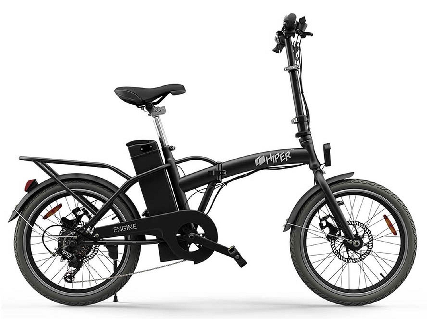 - Мощный 250 Вт бесщеточный мотор-колесо вкупе с достаточно скромной массой позволяет добиваться динамичности разгона и разгоняет HIPER Engine BF200 в режиме электротяги до 25 км/ч, а в режиме педального хода все зависит от ваших возможностей и рельефа местности.
