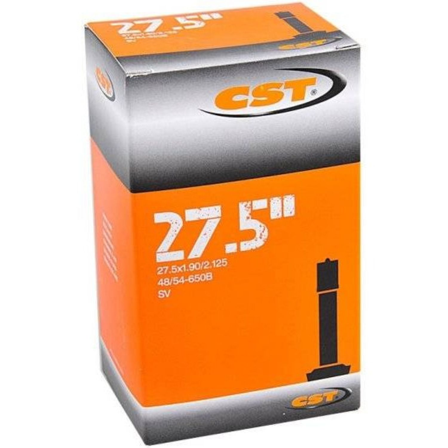 Велосипедная камера CST для колес 27,5-дюймов толщиной от 1,9" до 2,125". Ниппель: автониппель 48 мм (вентиль Schrader). Артикул: IB80050200.