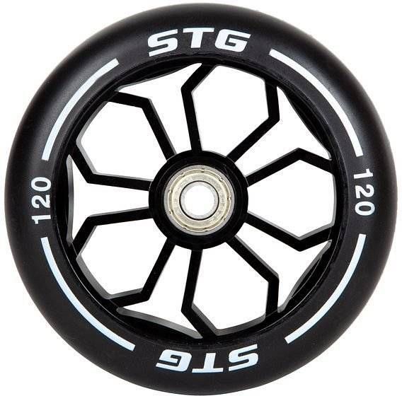 Колесо STG Х105168, для трюковых самокатов с алюминиевым ободом. Размер – 120 мм. Материал – PU. Обод – алюминиевый. Цвет – черный. Комплектация – 1 штука.