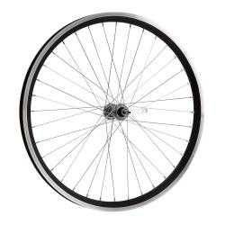 Колесо 26" переднее в сборе(без резины) с двойным алюминиевым ободом на 36 спиц со втулкой под дисковый тормоз.