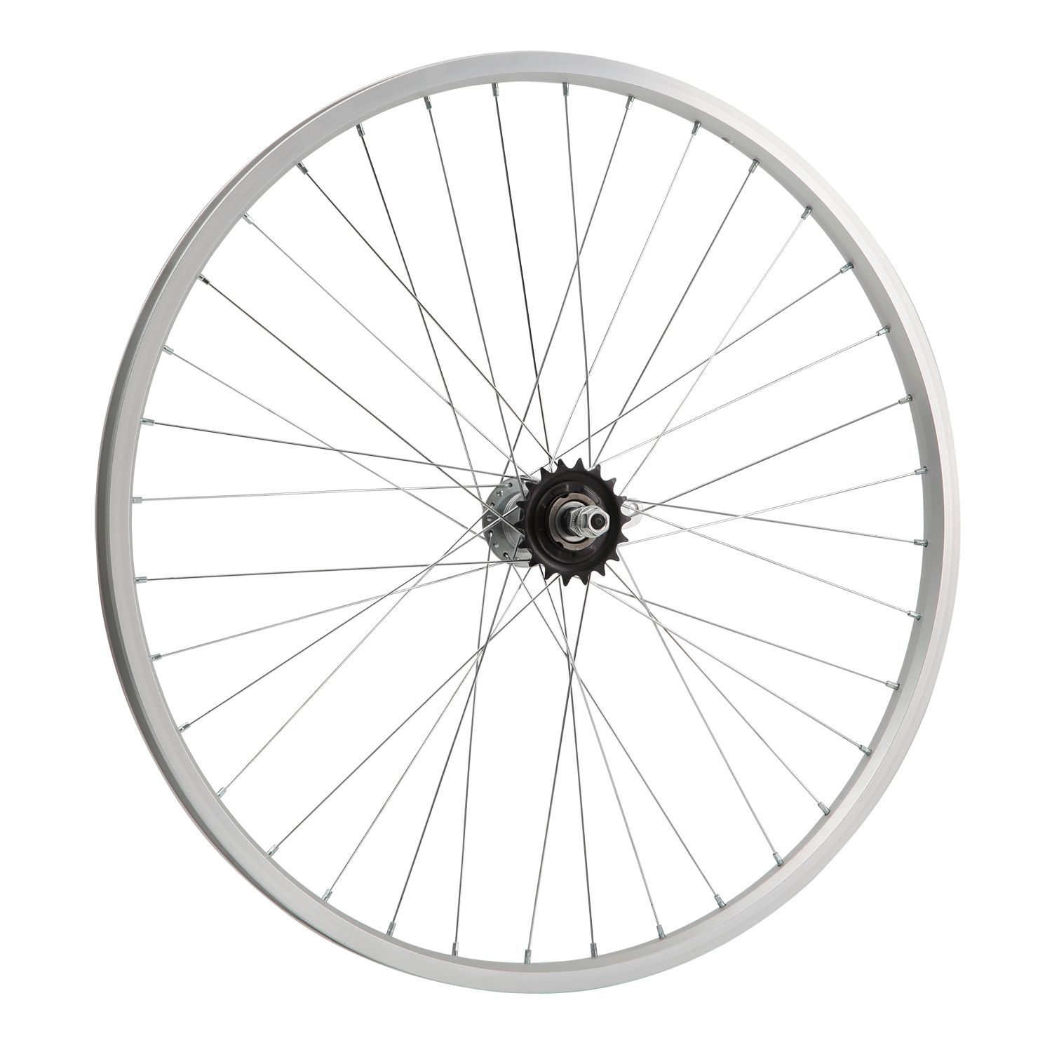 Колесо 26" заднее в сборе(без резины) с одинарным алюминиевым ободом на 36 спиц со втулкой под гайку.