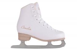 Практичные женские фигурные коньки с ботинком из морозостойкой искусственной кожи и подкладкой из короткого синтетического меха.