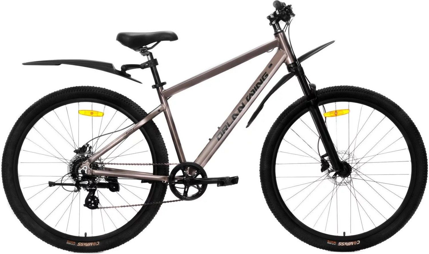 Двойные алюминиевые обода и втулки на промподшипниках гарантируют долговечность и устойчивость колёс, что особенно важно для активных велосипедистов. Дисковые гидравлические тормоза Shimano MT200 работают надёжно и эффективно в любых погодных условиях, повышая безопасность на дороге и позволяя уверенно контролировать скорость. Покрышки Compass 29"х2.125 средней ширины обладают отличным сцеплением с дорогой и хорошим накатом, делая езду более комфортной и стабильной.