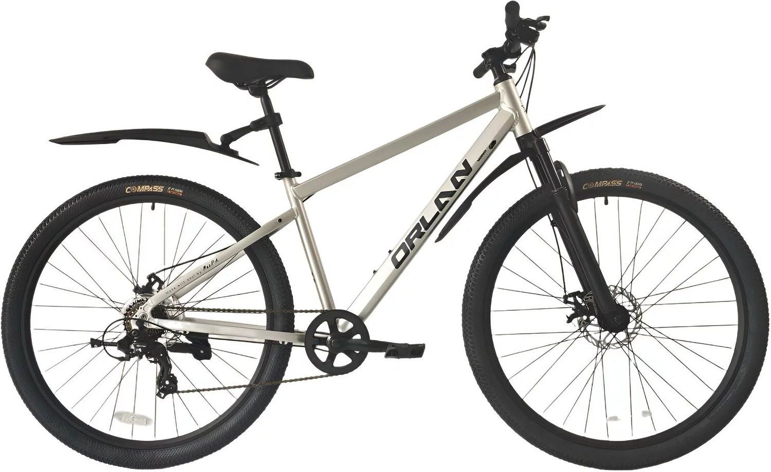 Двойные алюминиевые обода и втулки на промподшипниках гарантируют долговечность и устойчивость колёс. Дисковые механические тормоза работают надёжно и эффективно в любых погодных условиях, повышая безопасность на дороге. Широкие покрышки Compass 29"х2.3 способствуют отличному сцеплению с дорогой и дополнительной амортизации, делая езду более комфортной.