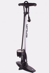 Насос велосипедный напольный с универсальным внутренним двусторонним клапаном для всех типов камер. Алюминиевый корпус. Оборудован манометром, показывающим давление в камерах и подножкой для упора и удобства накачивания колес. Клапан оборудован запорным механизмом.