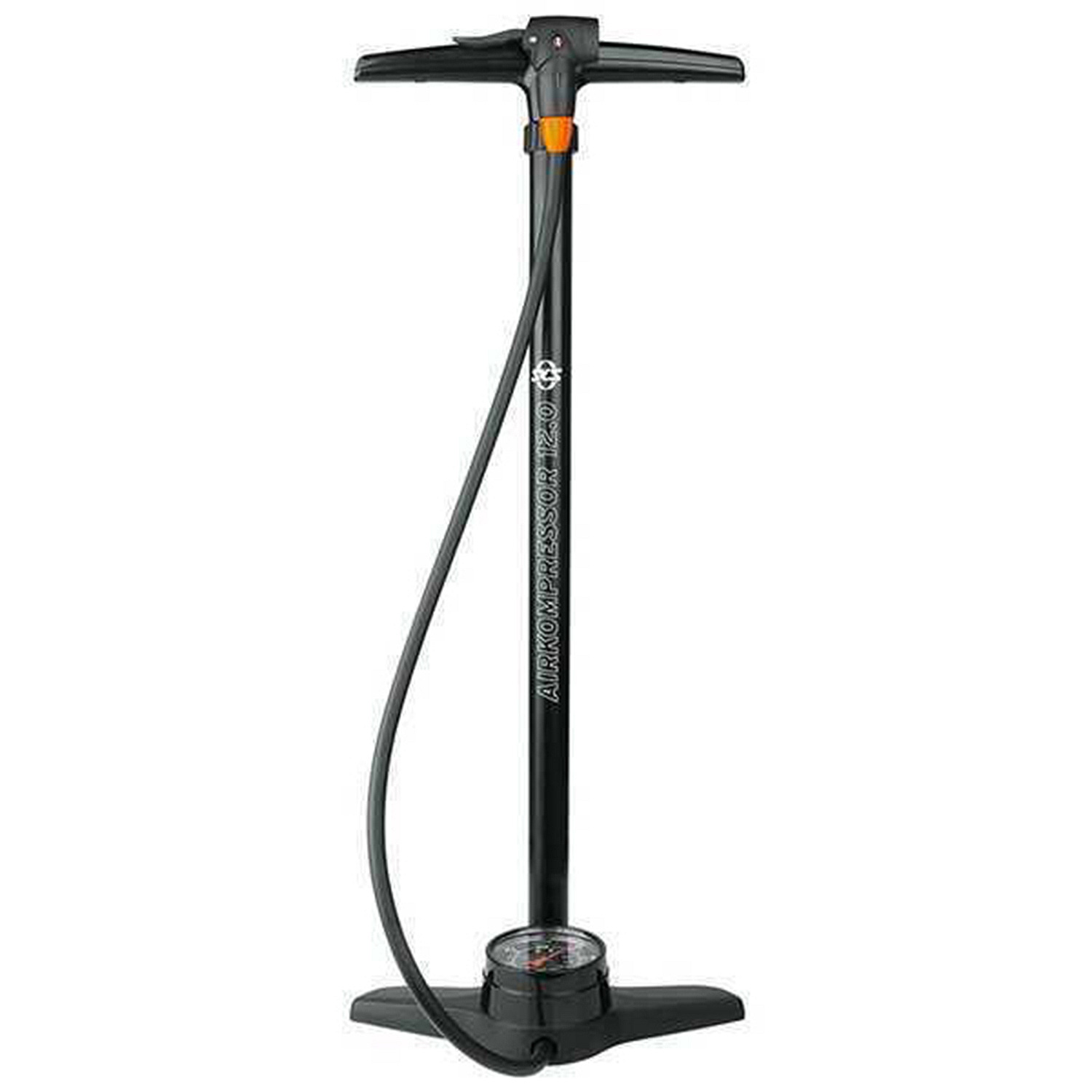 SKS Airkompressor 12.0 White - удобный напольный ручной насос, который будет отличным выбором для гаража, мастерской или сервисного центра. Представляет собой металлический цилиндр высотой 730 мм с большой Т-образной ручкой, пластиковым основанием и встроенным манометром. За один ход поршня нагнетается большой объем воздуха, который позволяет накачать колесо велосипеда очень быстро. Головка клапана Multivalve подходит для всех типов ниппелей. Максимальное давление: 12 бар174 PSI.