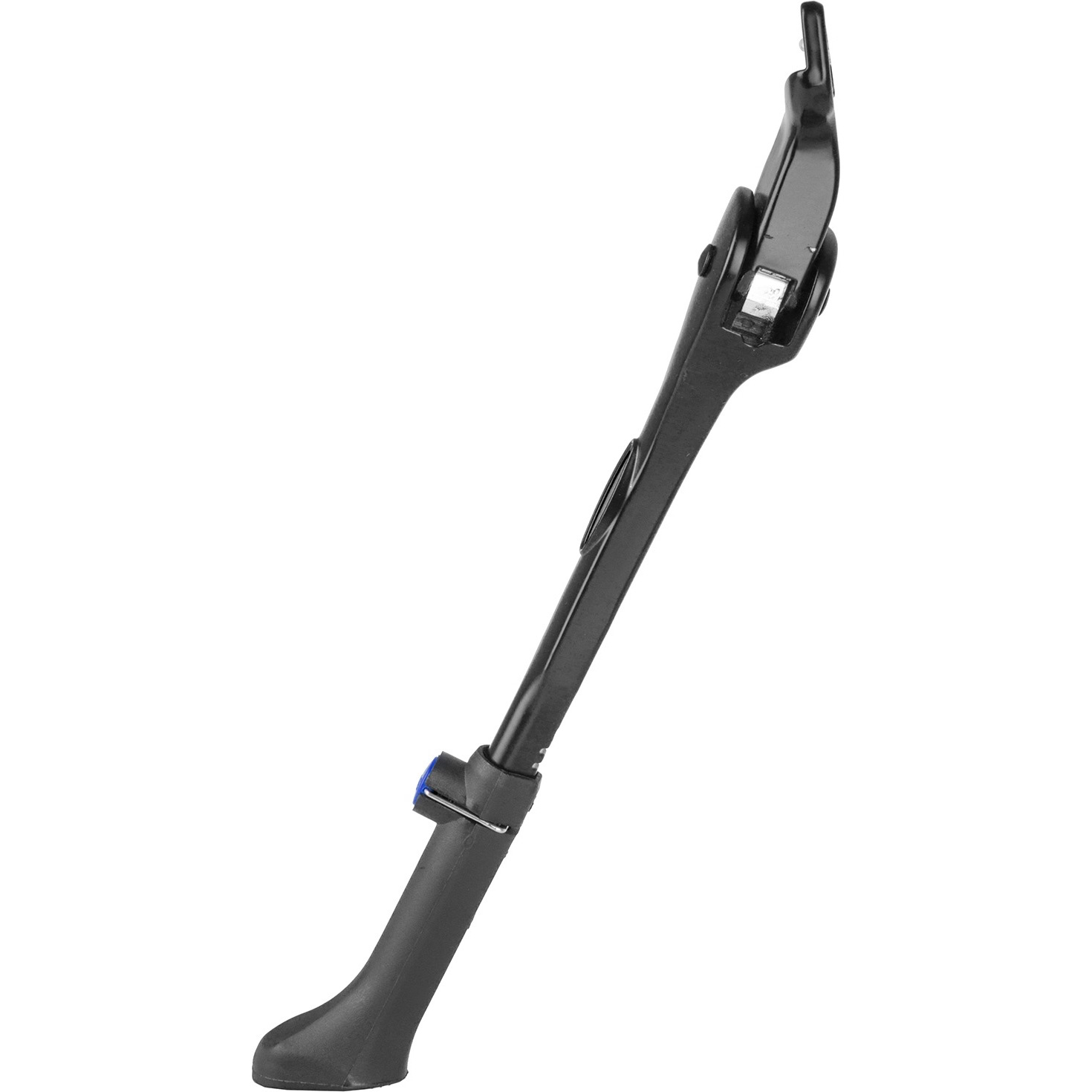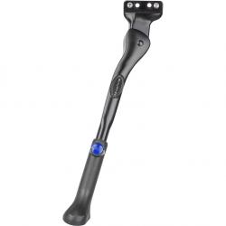 Регулировка длины осуществляется без инструментов, что удобно в поездках. Встроенная прорезь предотвращает проворачивание подножки под нагрузкой, сохраняя устойчивость велосипеда на любых поверхностях. Надёжное двухболтовое крепление гарантирует стабильность в рабочем положении.