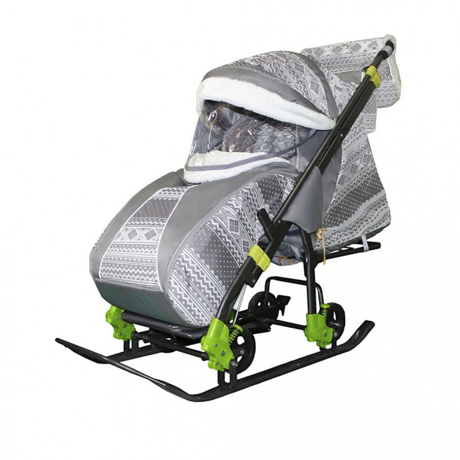 Galaxy kids 5-1- плоские полозья 40 мм- высокопрочный облегченный стальной каркас- водоотталкивающая колясочная ткань- механизм смены полозьев на колеса выдвижная колесная база нового образца- бортик безобастности- козырек с меховой окантовкой- спинка имеет ТРИ положения сидя, полулежа и лежа- подножка для ног с регулируемым углом наклона, позволяющая ребенку в положении лежа комфортно вытягивать ножки- перекидная ручка для удобного и безопасного управления санкой-коляской- чехол для ног с 2-мя молниями для удобного открывания с двух сторон- светоотражающий кант- широкое посадочное место 410 мм- смотровое окошко для наблюдения за ребенком- съемный меховой матрасик- меховая окантовка- муфта для рук с мехом- сумка с кармашками для полезных мелочей- пятиточечный ремень безопасности- съемный прозрачный тент от дождя и осадков- колеса на полозьях для удобной транспортировки- размер в разложенном виде 1090х445х1060мм- размер в сложенном виде 1105х445х280мм- вес изделия 12,3кгНОВЫЕ ОПЦИИ- Пружинные амортизаторы.Такие амортизаторы помогут маме преодолеть любые препятствия. Не стоит думать, что Вы будете гулять только по ровным дорожкам, не забывайте о бордюрах, ступеньках, порогах и других дорожных неприятностях