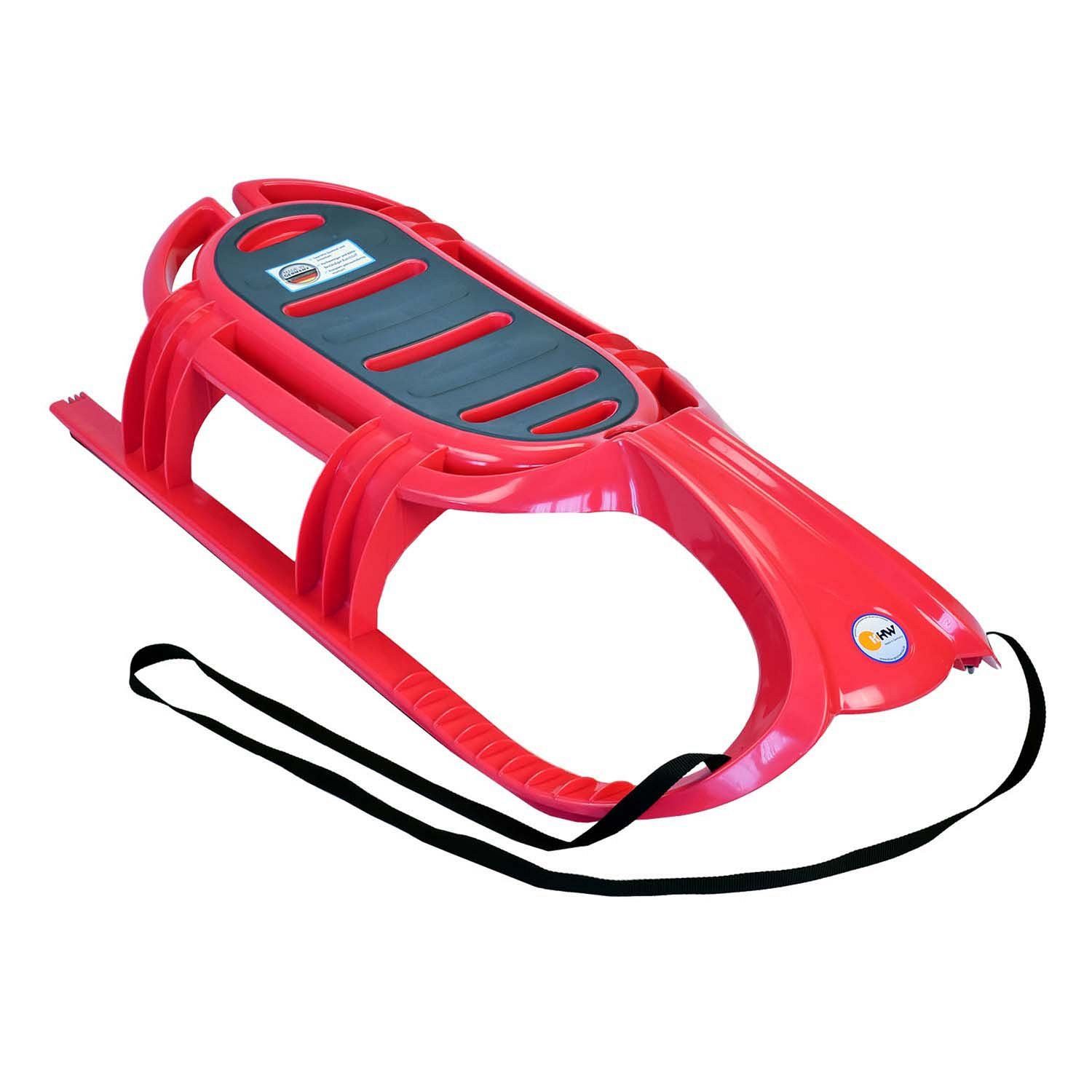 На полозьях расположены пластины из нержавеющей стали, которые улучшают скольжение и защищают санки от повреждений