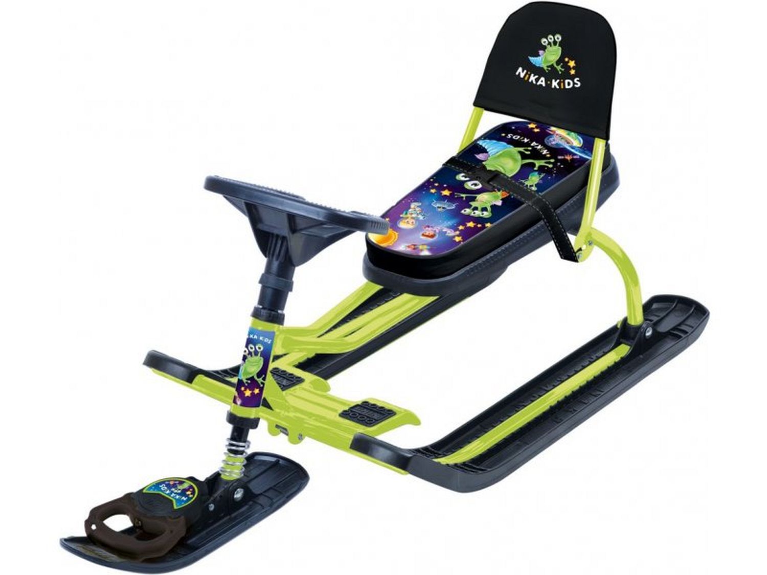 Классический снегокат с усиленным тормозом оценят и дети, и взрослые. Это и отличный способ семейного отдыха. Яркая маневренная модель придется по душе любому ребенку. Она имеет прочный металлический каркас, удобное сиденье и классическое расположение полозьев. Ребенок может управлять движением снегоката при помощи руля, который направляет ведущую переднюю лыжу. Также имеется прочная веревка с удобной пластиковой ручкой, при помощи которой снегокат легко перемещать. Снегокат имеет мягкое сиденье с принтом.