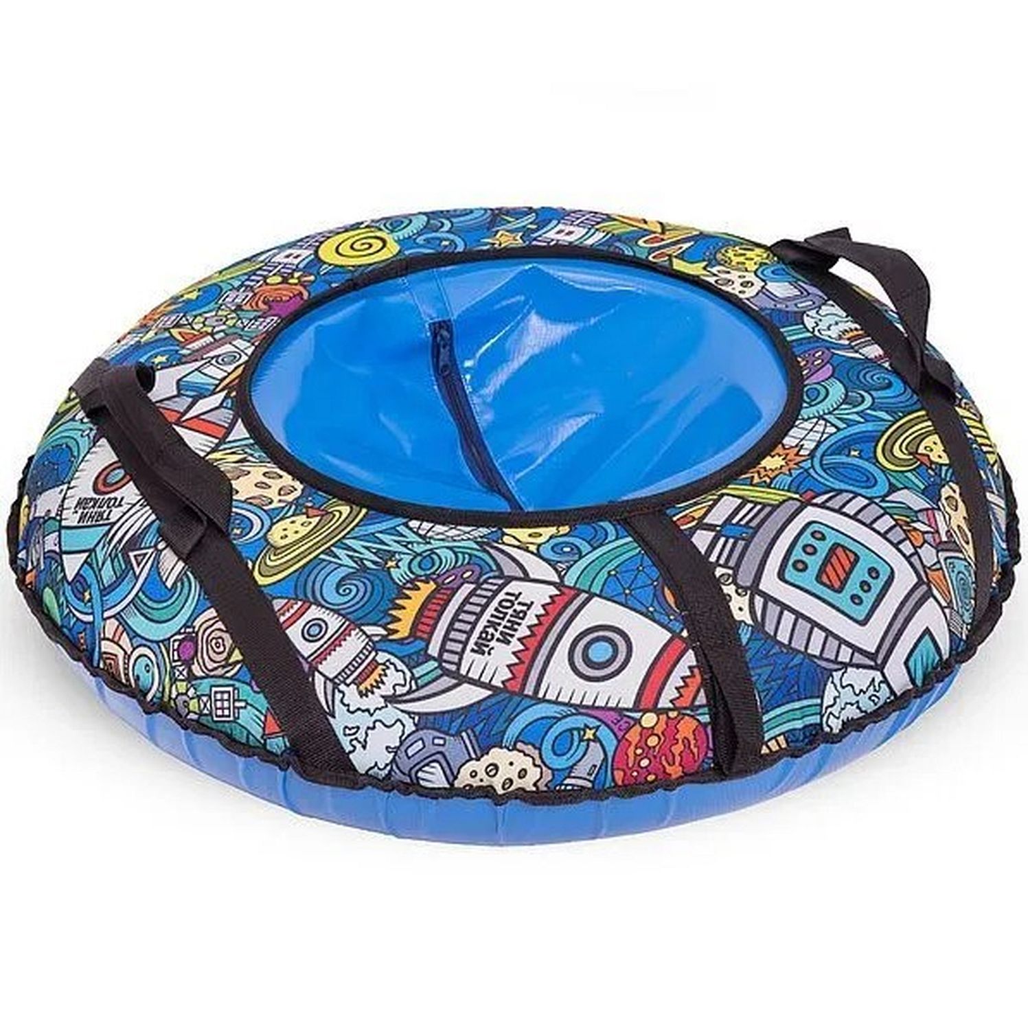 Тюбинг-ватрушка изготовлен из прочного тента, который устойчив к морозам до 25 градусов, глянцевая поверхность материала позволяет тюбингу-ватрушке отлично скользить по снежной поверхности. Для удобного катания предусмотрены ручки-держатели и буксировочный трос из усиленной стропы. Тщательно прошитые плотной лавсановой нитью швы гарантируют долгий срок службы. Прочное травмобезопасное сиденье имеет усиленное дно, а также дополнительно имеет стропу под сидением, которая снижает нагрузку и позволяет пользоваться тюбингом несколько сезонов. Тюбинг укомплектован усиленной автомобильной камерой. Тюбинг-ватрушка является идеальным вариантом для зимних развлечений!