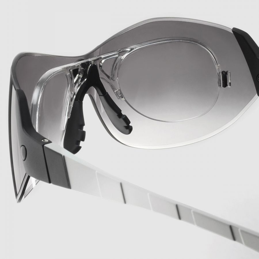 Носовая часть: Полностью настраиваемая носовая часть очков выполнена с использованием упругого полимера СlickFace, повторяющего форму Вашего носа и обеспечивающего безупречное прилегание. Верхний слой перегородки закрепляет вставки с диоптриями и служит для стабилизации линз.